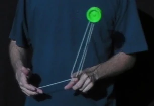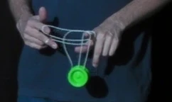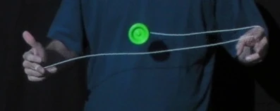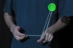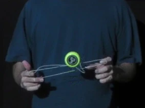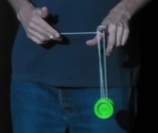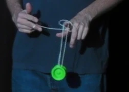 Step 2: Put your free hand index finger in the path of the string and let the yo-yo swing around it. Compared to Man on the Flying Trapeze, the yo-yo is a lot farther away from your index finger. | |