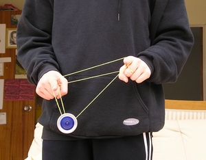 Step 3: ...and while you pull the string taut by bringing your hands further apart... | |