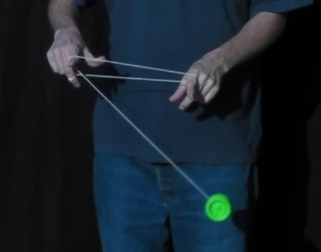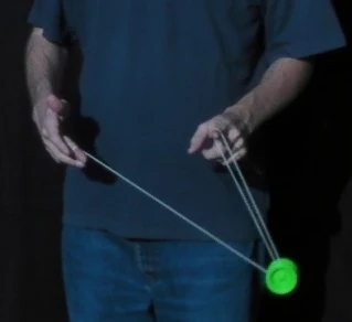Now, how do you get out of this wrap? With a responsive yo-yo, a double/triple or nothing can be tossed up, releasing the string off both index fingers and the yo-yo will return. This is very similar to the flyaway dismount with a trapeze.