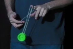 Step 1: This dismount is the beginning for the yo-yo trick Absolute Zero. It should be done with an unresponsive yo-yo. This one works nicely for Double or Nothing, but is not recommended for Triple or Nothing. Toss up the yo-yo while dropping the first loop around your free hand index finger. | |