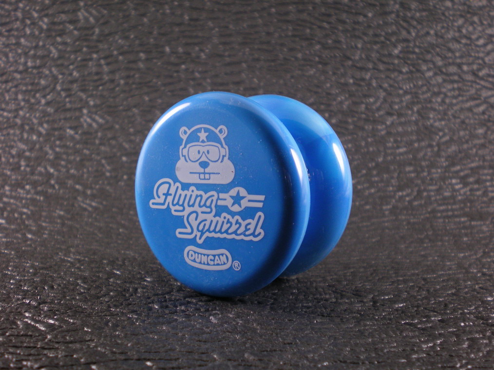 The Flying Squirrel by Duncan is an undersized plastic ball bearing yo-yo released as part of the Hardcore series. It is an improved version of the Mosquito, featuring an adjustable weight system under its side caps, similar to that of the older Ballistic yo-yo. The weight setting can be adjusted up to 66 grams, comparable to the earlier releases of the Screaming Eagle series. As with the Mosquito, it features a hybrid response system consisting of starbursts with Friction Stickers placed over them. It is generally recommended to remove one of the Friction Stickers for smoother, low-responsive play.