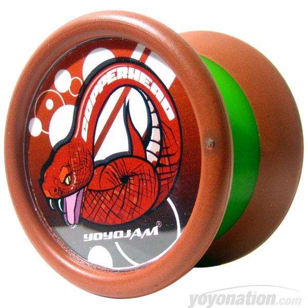 The Copperhead is a YoYoJam yo-yo based on the SpinFaktor HG, using the Heavy Gravity material for rim-weighting, but unlike the latter, its rims are heavier and are made in a copper coloration. The yo-yo uses the typical YoYoJam hybrid response system of one O-ring and a starburst.
